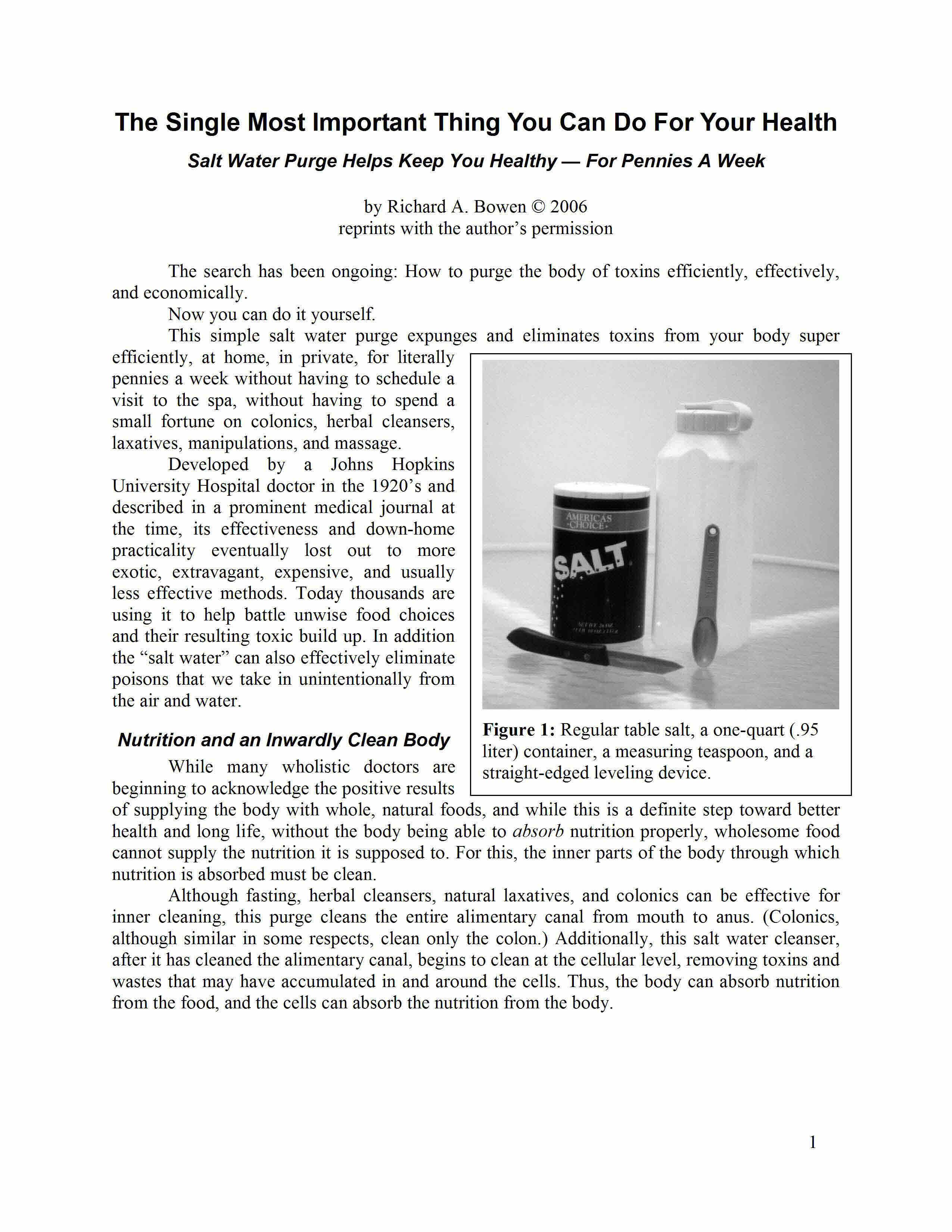 Yogacharya’s famous ‘Salt Water Cocktail.’ What would a discussion of Yogacharya be without a description of his salt water treatment. It is and was fairly controversial. It seems to go against all accepted medical advise, but Yogacharya felt very strongly about it and consequently so do I. In my mind I felt it was impossible to be Yogacharya’s disciple if you didn’t drink ‘salt water’ on a daily basis. I know that sounds harsh, but if you can’t follow that simple instruction what happens when more strict discipline follows. The following is a detailed description by Richard A. Bowen. If you try this good luck and be healthy.